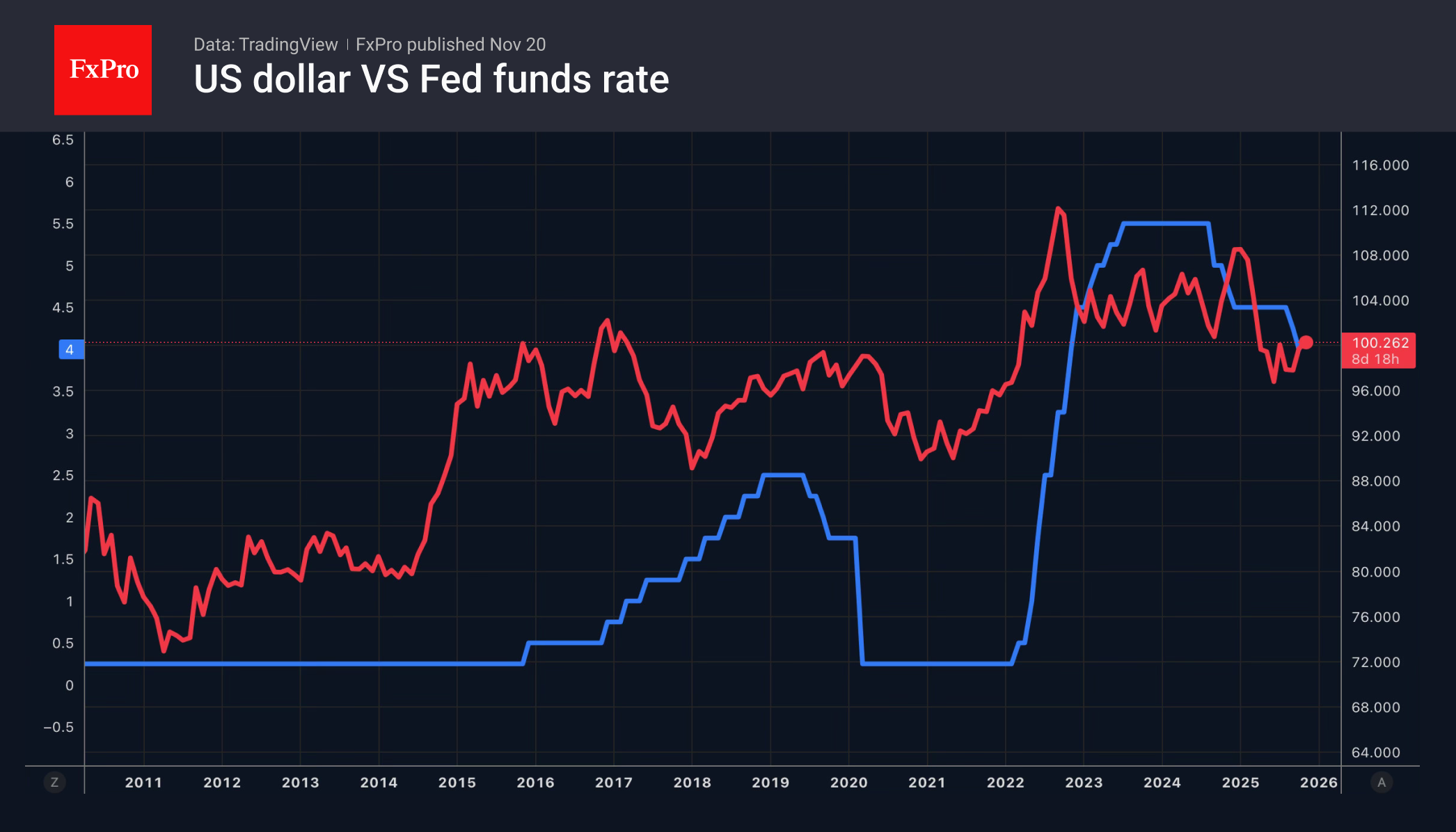 Давление Белого дома на центробанк стало одним из драйверов падения индекса USD на 10% в первом полугодии. Затем Дональд Трамп ослабил хватку, так как ФРС снизила ставки в сентябре и октябре. Переключение ФРС в позицию ожидания вернуло в повестку дня Трампа давление на Федрезерв, что трансформируется в давление на доллар.