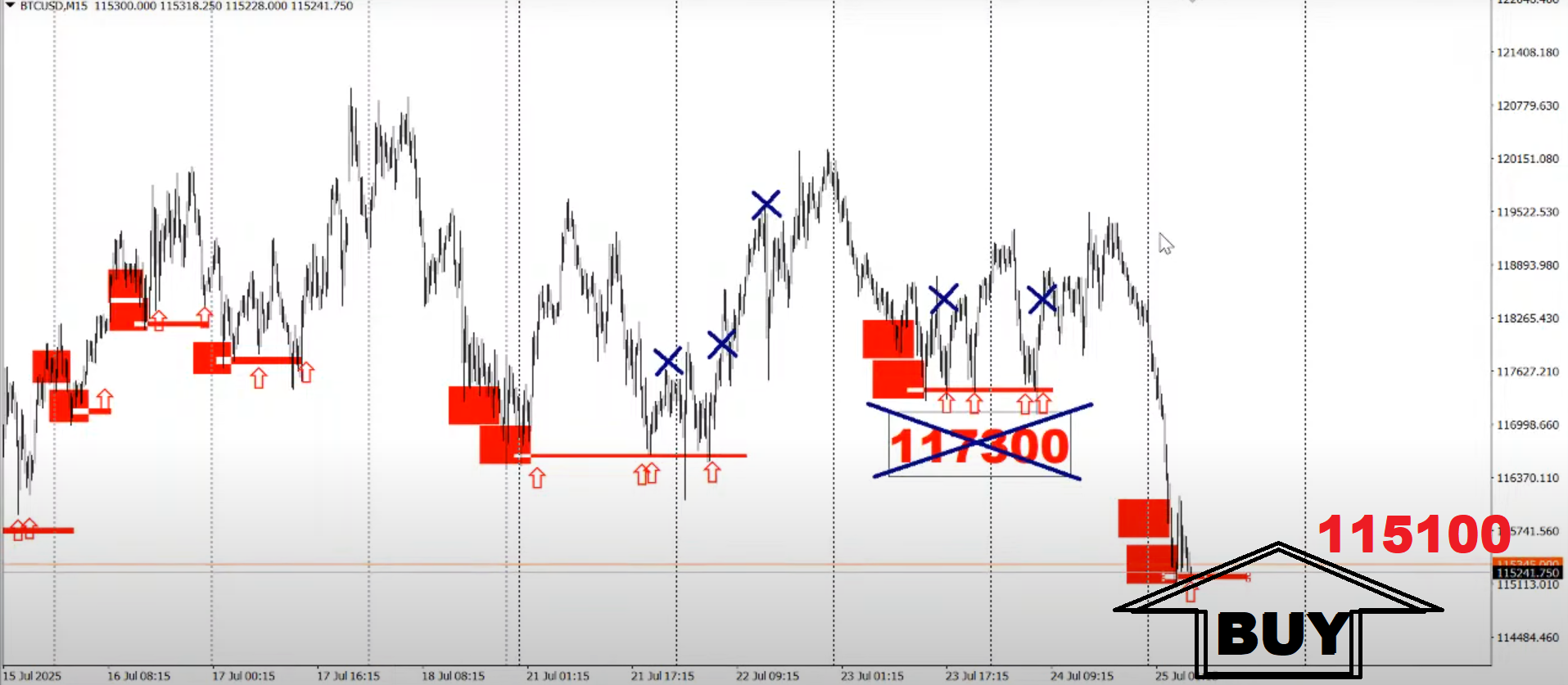 Сегодня важный аргумент для продавцов доллара USD на рынке является и появление нового импульса к росту в рамках краткосрочного тренда в Биткоин (BTC) из области 115100 - 115200.