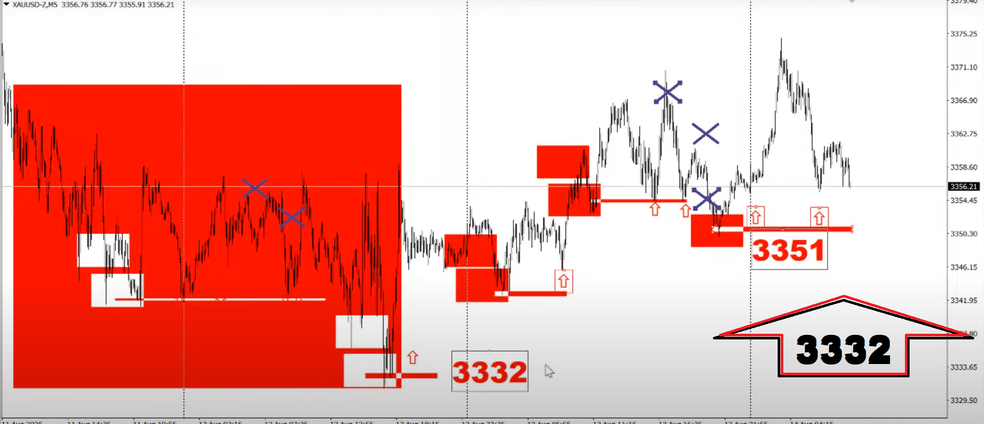 Усиление ожиданий на рынке, что ФРС США готовит снижение процентной ставки в сентябре открывает и новые перспективы для золота. Разворот краткосрочного тренда к росту в ЗОЛОТЕ ( Gold ) из области 3332 - 3351 является также ключевой целью для новых покупок в Gold, но только на возврате в район 3332.