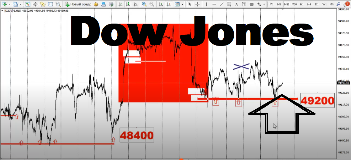 Важно, что котировка Dow Jones сохраняет восходящий, краткосрочный тренд от 48400 - 48600, провоцируя переток ликвидности из доллара США. При этом на этой неделе формируется новый импульс к росту рынка акций из области 49200 - 49400.