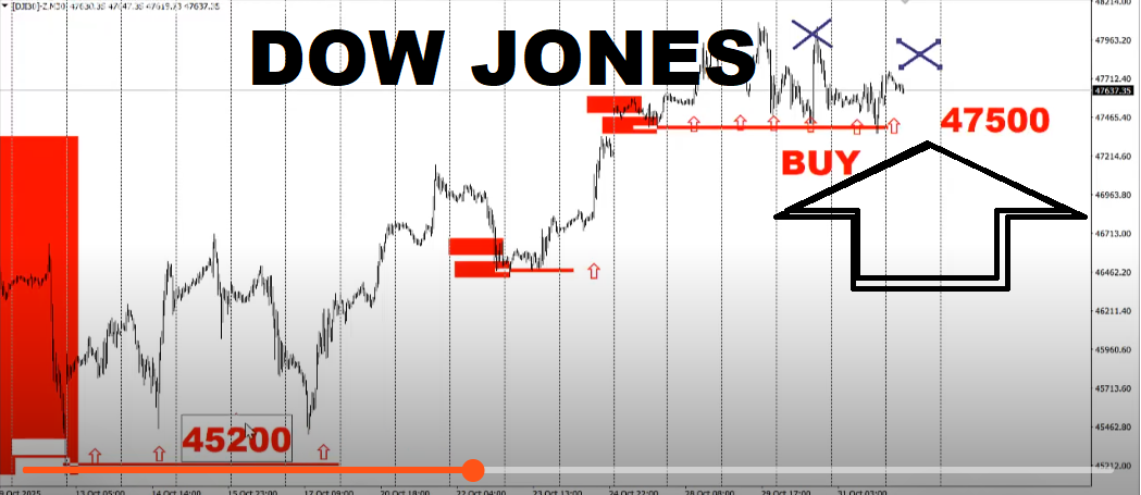 В свою очередь Dow Jones сохраняет импульс к росту из области 47500, где уже вторую неделю происходит выкуп активов на возврате цены к 47500.