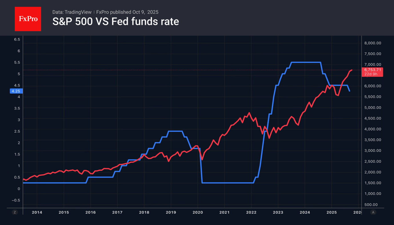 Шатдаун добавляет неопределённости. С одной стороны, ФРС не получает важных данных для снижения ставок. С другой, альтернативная статистика сигнализирует об ослаблении рынка труда и подталкивает центробанк к дальнейшему смягчению политики.