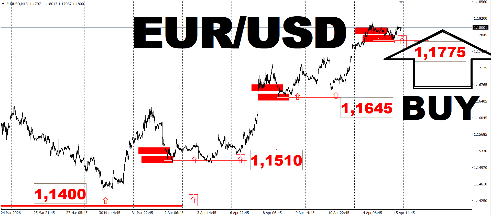 Статья содержит демонстрацию актуальных целей (выгодных цен) и логики для работы c евро и долларом (EUR/USD) на 15 - 17 АПРЕЛЯ 2026 года. Напоминаю, что предупреждение в онлайн режиме о каждой сделки для трейдера доступны и Вам по ссылке в конце данной статьи, а сейчас поговорим о главных приоритетах для покупателей золота на ближайшее время.
