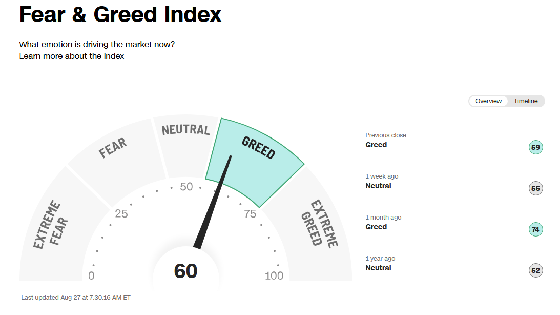 При этом, индекс страха и жадности на крипторынке остаётся в зоне «жадности» и на отметке 60 (из 100). Большую часть лета индикатор также находился в зоне «жадности», что говорит о том, что интерес участников рынка к покупкам криптовалют все же сохраняется, хотя и немного упал с достигнутых ранее отметок вблизи 80: многие инвесторы заняли выжидательную позицию. При этом, капитализация всего крипторынка, согласно данным TradingView, сегодня достигла 3,820 трлн долларов, что на 0,11 % меньше, чем вчера.