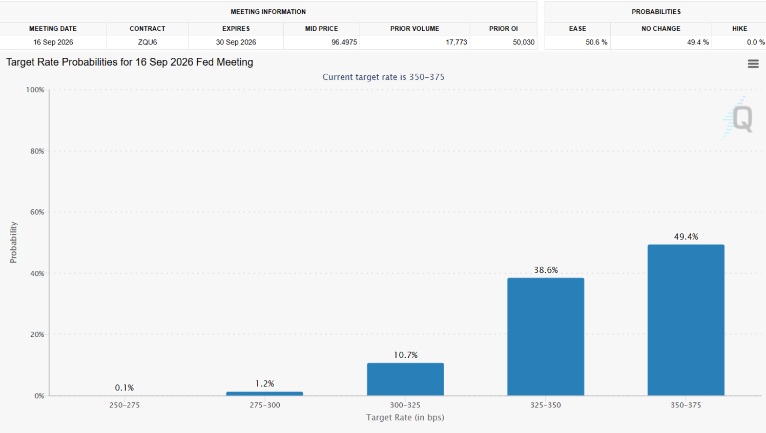 Согласно инструменту CME FedWatch, шансы склоняются к тому, что ФРС останется на месте как минимум до сентябрьского заседания, когда вероятность решения о сохранении ставки составляет примерно 49%. Это большое изменение по сравнению с тремя снижениями, которые были заложены всего три недели назад.