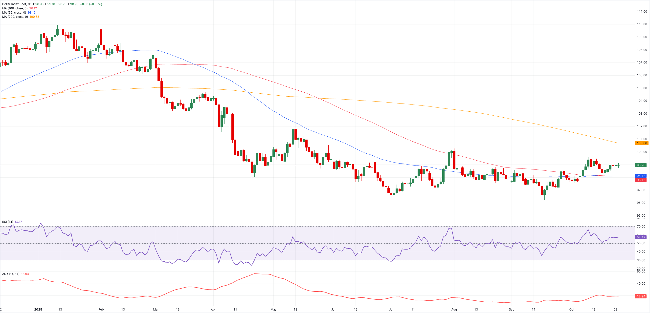 Доллар США (USD) начал неделю на прочной основе, хотя его ранний импульс ослабел по мере продвижения дней. Тем не менее, индекс доллара США (DXY) смог закрыться с незначительными приростами около отметки 99,00, что достаточно, чтобы стереть откат предыдущей недели и сохранить восстановление от минимума 2025 года, зафиксированного в середине сентября.