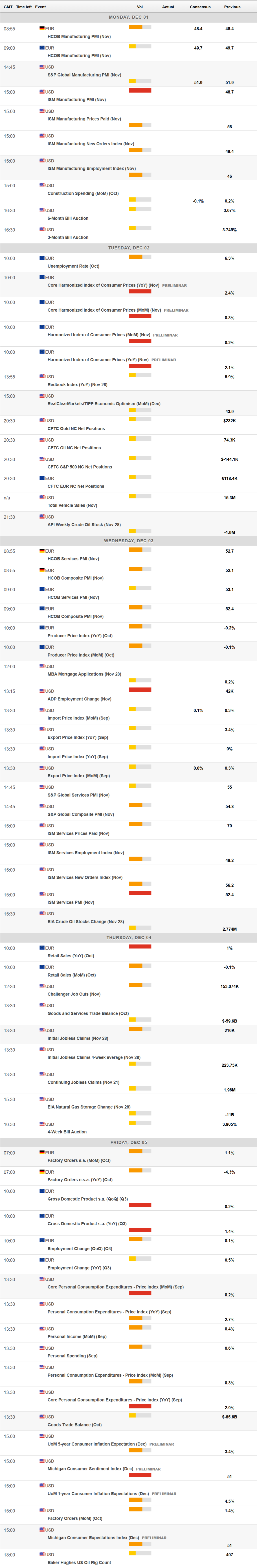 Макроэкономический календарь начнет декабрь с публикации индекса деловой активности в производственном секторе ISM за ноябрь в понедельник. Hamburg Commercial Bank (HCOB) и S&P Global опубликуют окончательные версии своих индексов деловой активности в производственном секторе для ЕС и США соответственно в тот же день. Индексы деловой активности в сфере услуг будут опубликованы в среду.