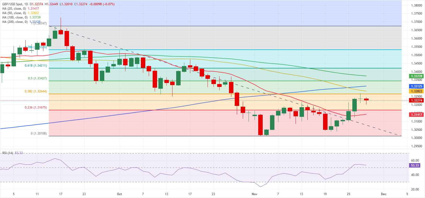 GBP/USD повернул на юг в пятницу и снизился к уровню 1,3200, сведя на нет небольшую часть своего недельного роста. Осторожные настроения на рынке затрудняют паре поддержание бычьего импульса, так как объемы торгов остаются низкими по мере приближения к концу сокращенной на праздники недели.