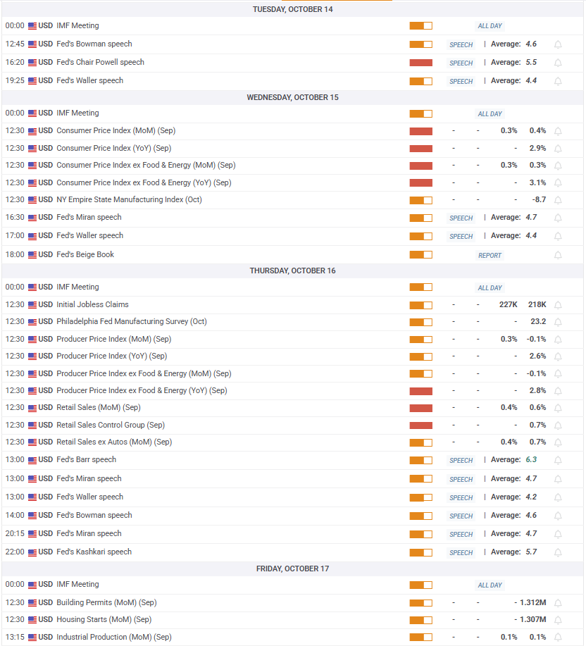Комментарии чиновников ФРС также будут внимательно отслеживаться участниками рынка, особенно если закрытие правительства продолжится. Если чиновники ФРС намекнут на необходимость осторожного подхода к дальнейшему смягчению политики, ссылаясь на нехватку данных и повышенную неопределенность, золоту может быть трудно набрать бычий импульс. С другой стороны, доллар США может оказаться под возобновившимся давлением продаж и позволить XAU/USD удержаться на плаву, если чиновники ФРС предложат, что смягчение политики может быть предпочтительным путем в случае длительного закрытия правительства и его потенциального негативного влияния на занятость и потребительские расходы.