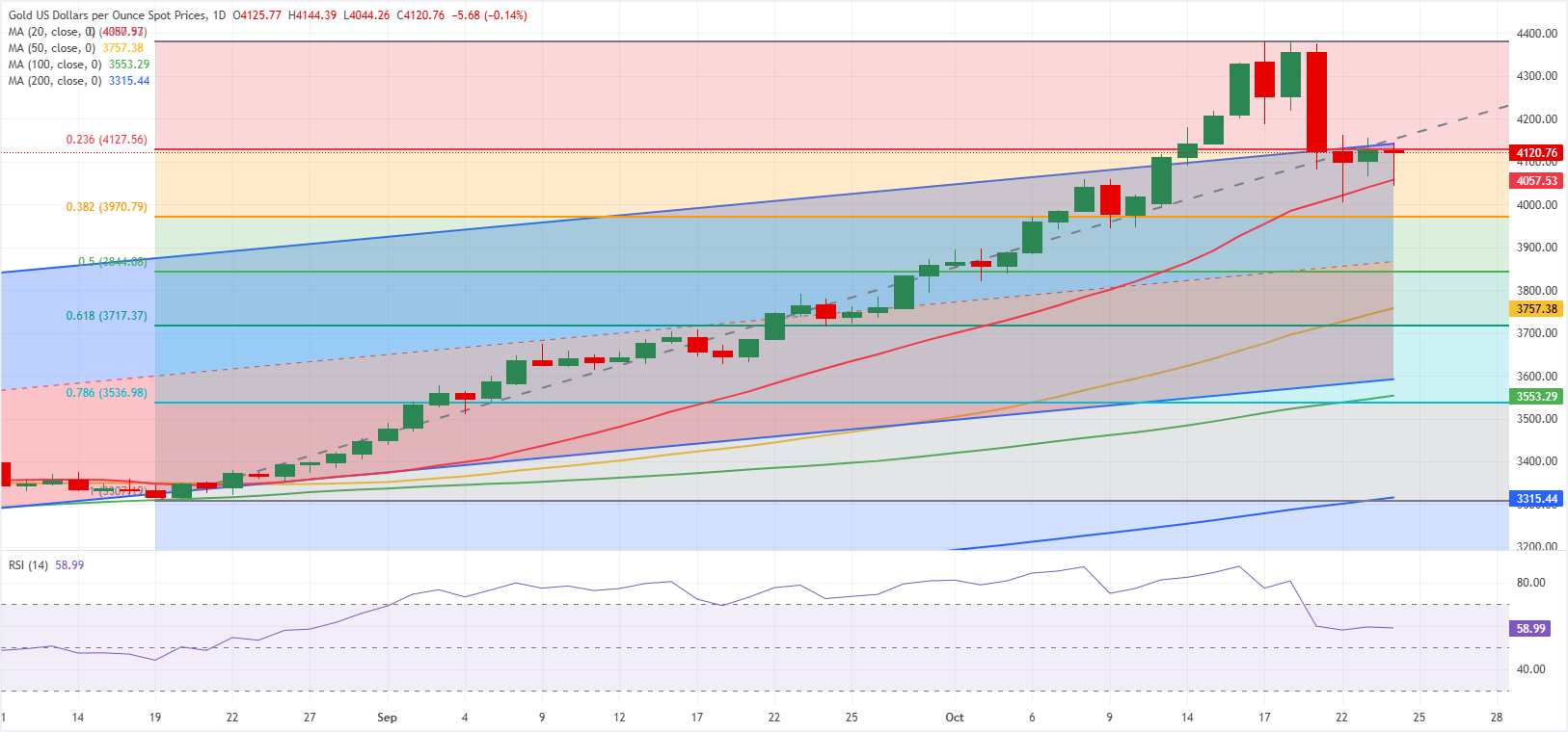 После двухдневной консолидации XAU/USD немного снизился рано в пятницу и упал ниже $4 100, так как доллар США (USD) набрал некоторую силу перед данными по инфляции за сентябрь.