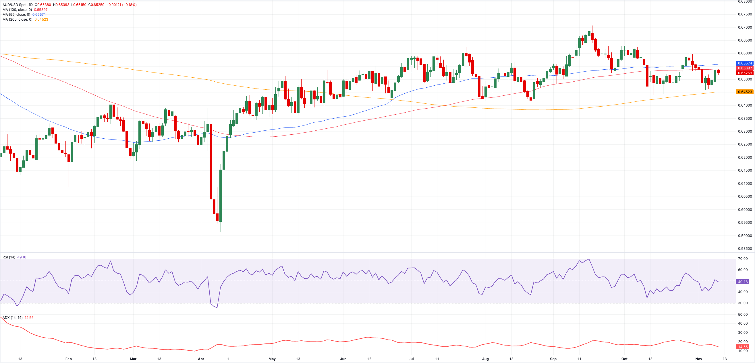 - AUD/USD разворачивает два последовательных дневных роста, удерживаясь около 0,6500.