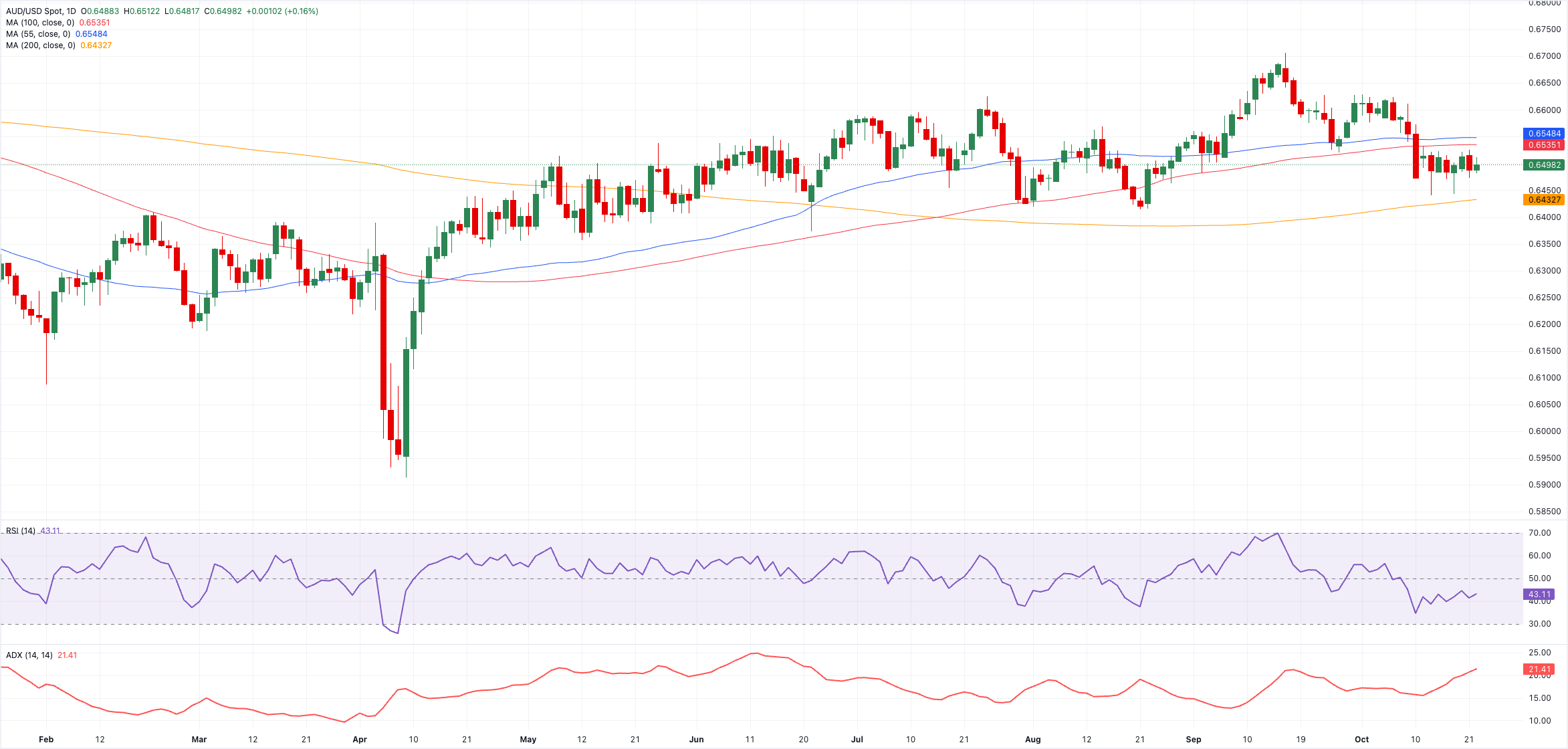 AUD/USD остается в состоянии консолидации, в то время как нижняя граница, похоже, поддерживается критической 200-дневной SMA около 0,6430.