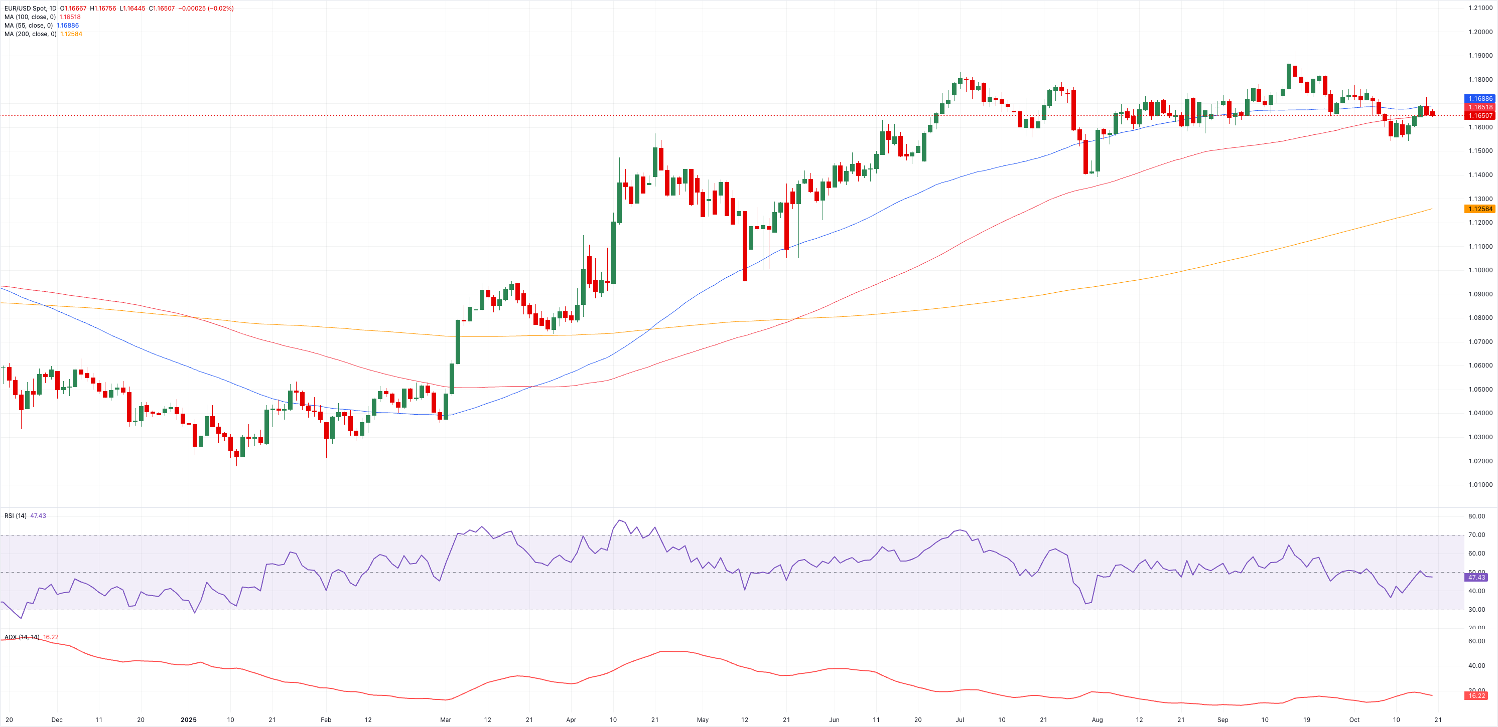 EUR/USD по-прежнему не может торговаться в ясном направлении в начале недели, перемещаясь в рамках консолидации в районе 1,1650 после значительного отката в пятницу.