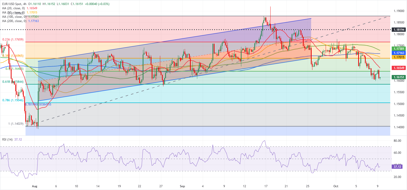 EUR/USD остается под давлением и снижается к 1,1600 в европейской сессии в четверг после закрытия первых трех дней недели в отрицательной зоне. Краткосрочный технический прогноз пока не дает признаков разворота.