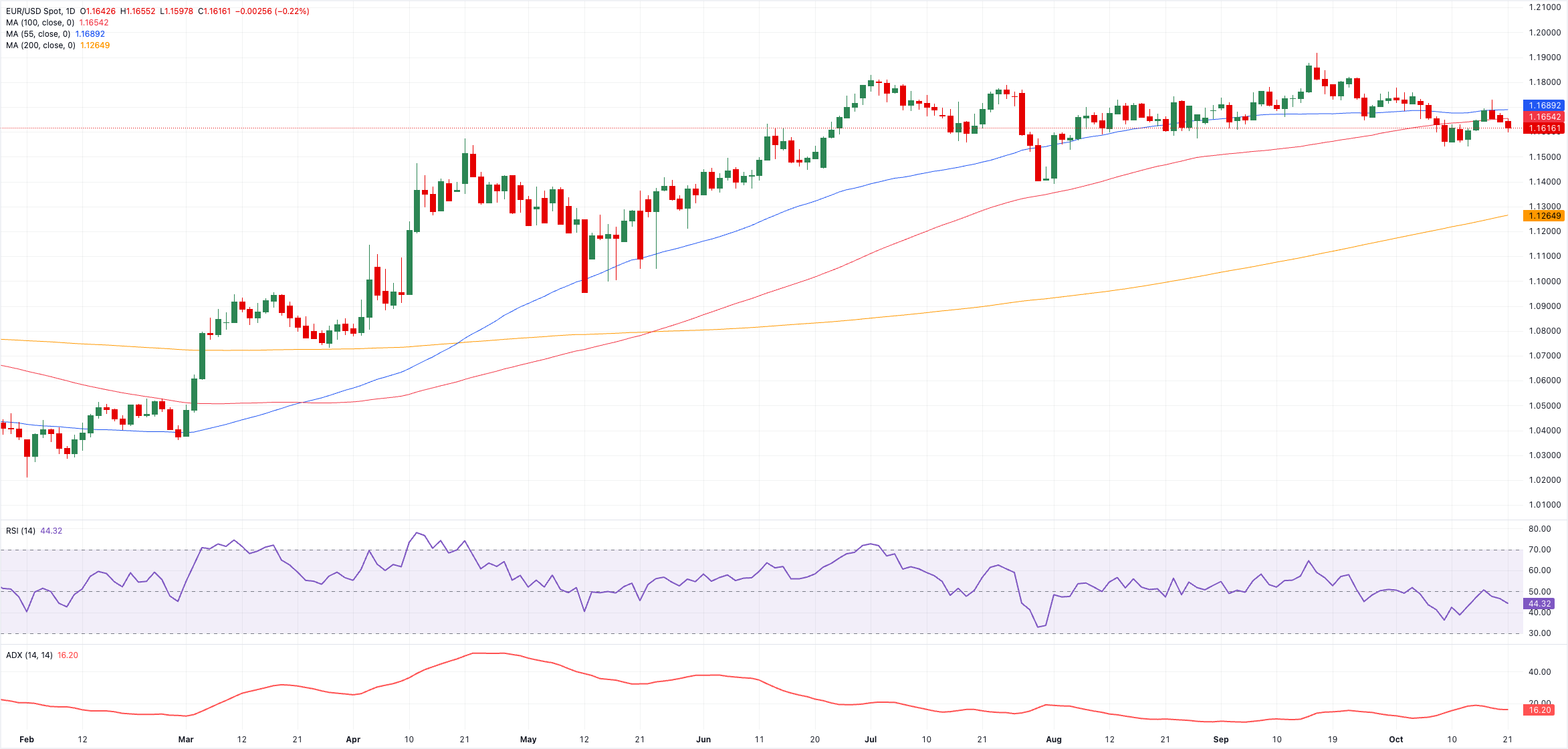 EUR/USD сохраняет медвежью динамику без изменений во вторник, откатываясь к ключевой зоне поддержки 1,1600 на фоне дальнейшего роста доллара США. Тем временем инвесторы продолжают следить за развитием торговых отношений между США и Китаем, а также за предстоящими предварительными индексами PMI и данными по CPI в США.
