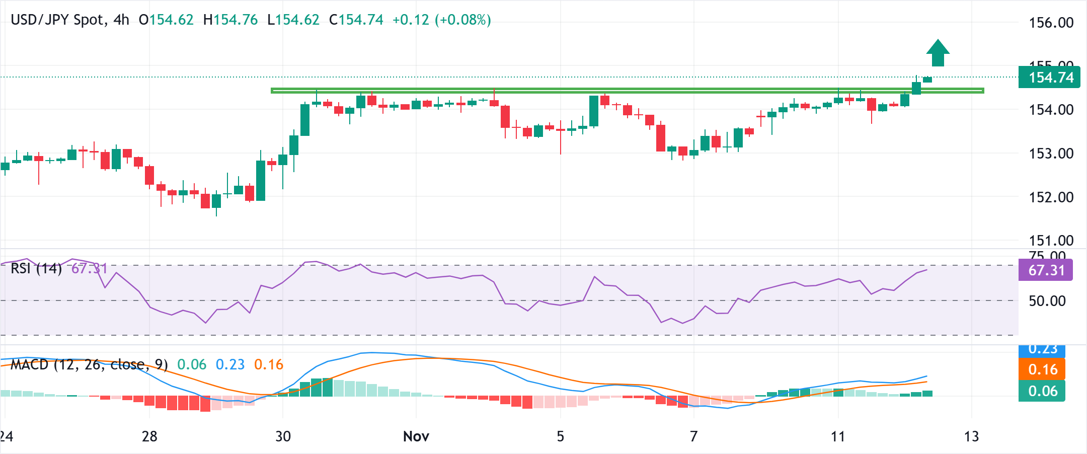 Кроме того, Такаити сообщила, что правительство планирует подготовить пакет мер для смягчения последствий роста стоимости жизни и увеличения инвестиций в области роста. Это происходит на фоне нежелания BoJ привязываться к дальнейшим повышениям процентных ставок, что добавляет неопределенности в отношении курса ужесточения политики центрального банка. Кроме того, оптимизм по поводу потенциальной сделки по прекращению приостановки работы правительства США, наряду с дипломатическим конфликтом Японии с Китаем по поводу замечаний Такаити о Тайване, еще больше оказывает давление на иену и способствует росту пары USD/JPY.