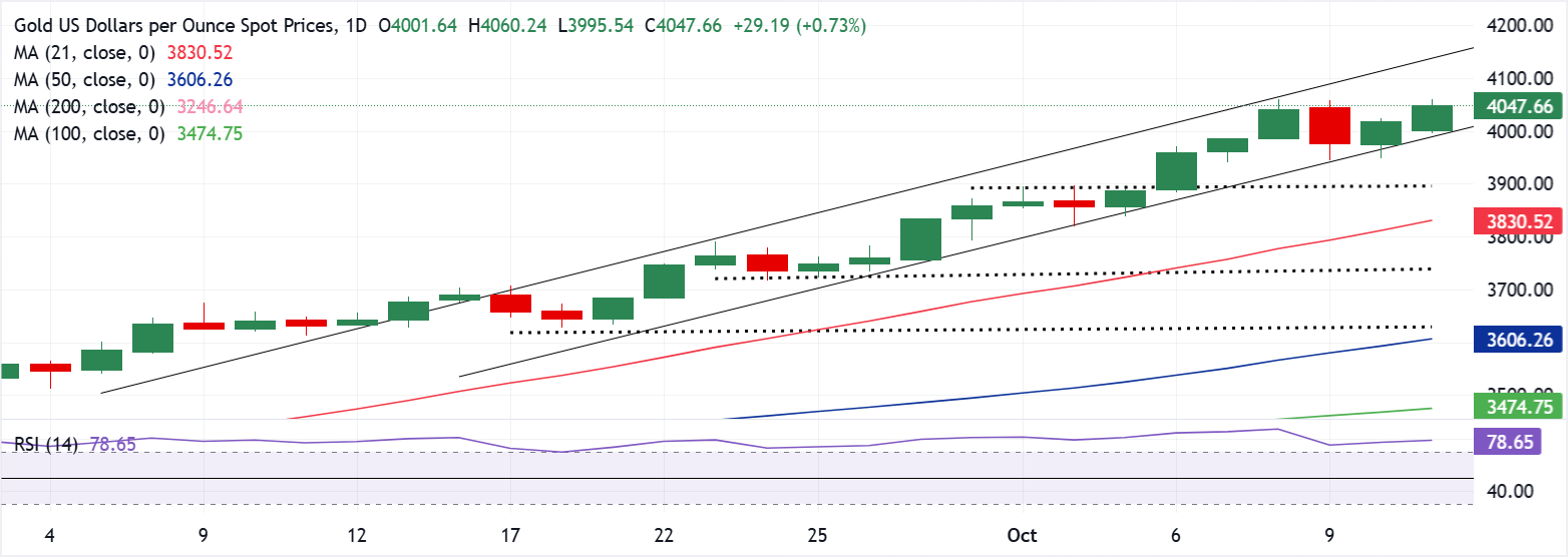 Тем временем положительный сдвиг в настроении на рынке рисков ослабляет привлекательность доллара США (USD) как безопасного актива, поддерживая яркий металл. Зеленый бакс испытывает давление из-за затянувшегося закрытия правительства США и сохраняющихся тарифов на Китай, вступающих в силу с 1 ноября.