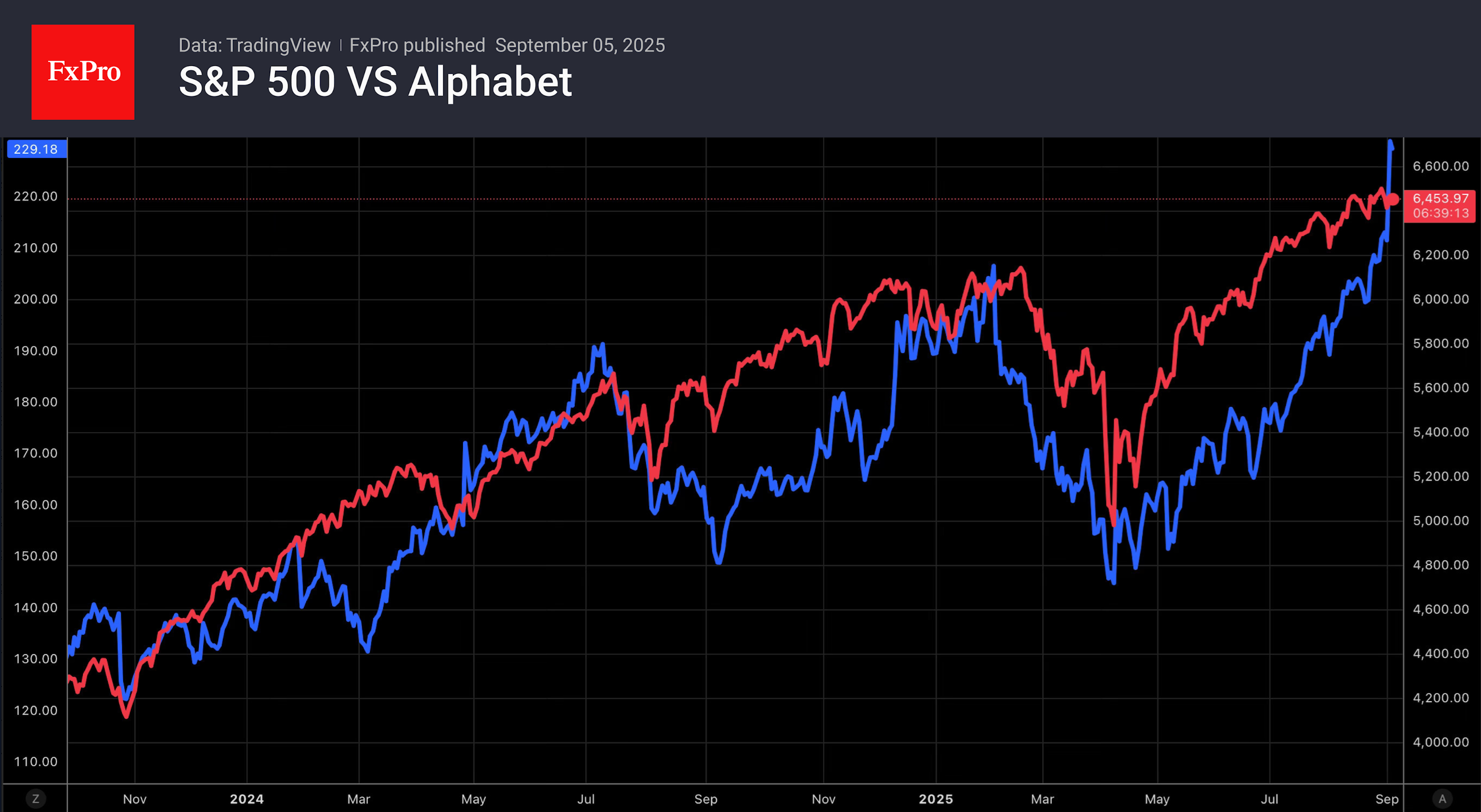 Неудивительно, что известия об избежавшем жёстких антимонопольных санкций и продажи Chrome Alphabet и намерении Apple запустить инструменты веб-поиска на основе искусственного интеллекта для Siri позволили S&P 500 быстро восстановить утраченные позиции.