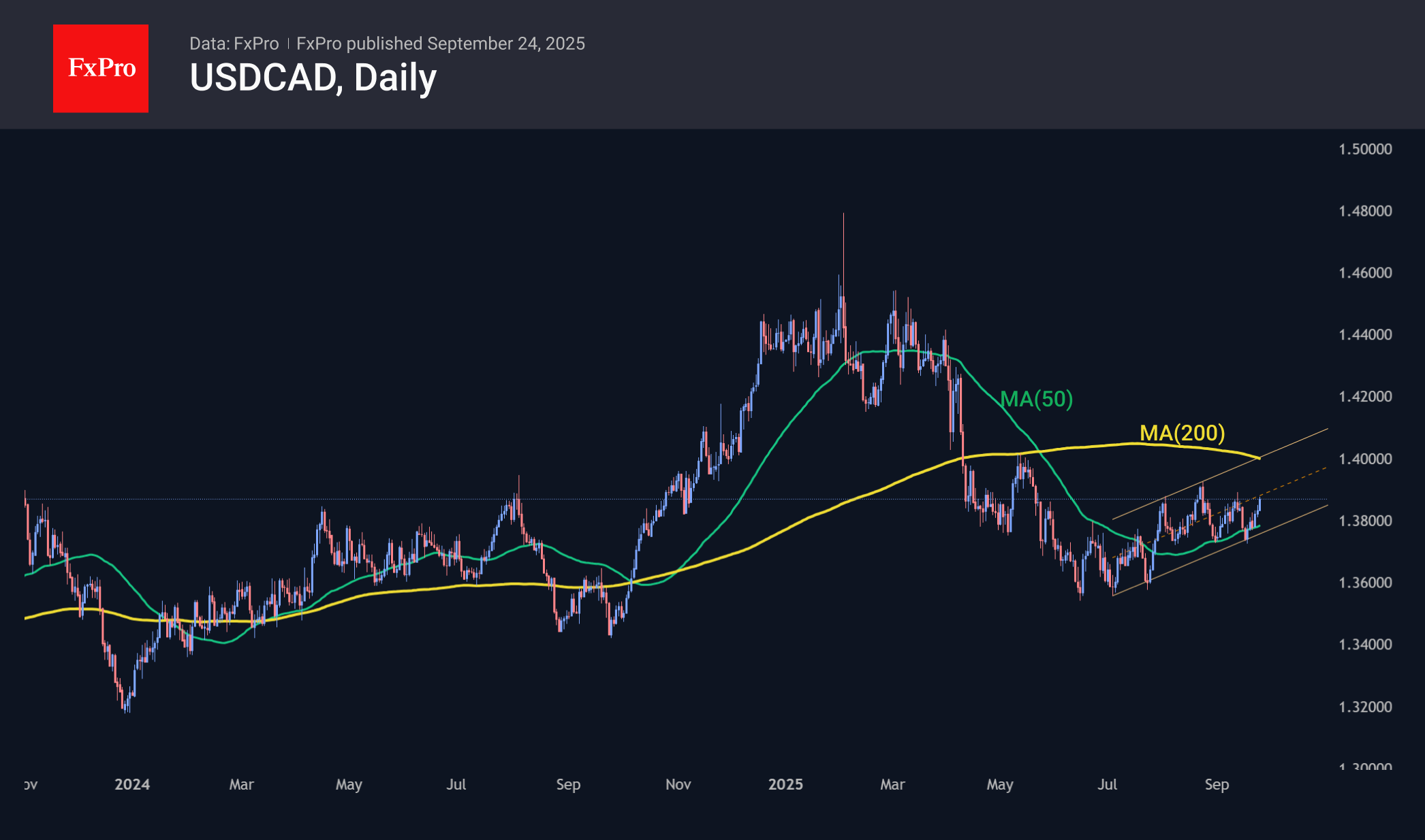 Другая сырьевая валюта – CAD – также зафиксировала свой локальный максимум против доллара 17 сентября, потеряв за это время свыше 1%. Это сравнительно небольшое движение подняло USDCAD в область 4-месячных максимумов. И это удивительное движение, учитывая рост цена золота и нефти, которые являются ключевыми составляющими экспорта. С июля в USDCAD развивается тенденция к росту с верхней границей сейчас у 1.40, где также проходит 200-дневная скользящая средняя. Преодоление этого круглого уровня способно открыть путь к области исторических экстремумов у 1.45, куда пара ненадолго выходит в периоды аномальной рыночной волатильности.
