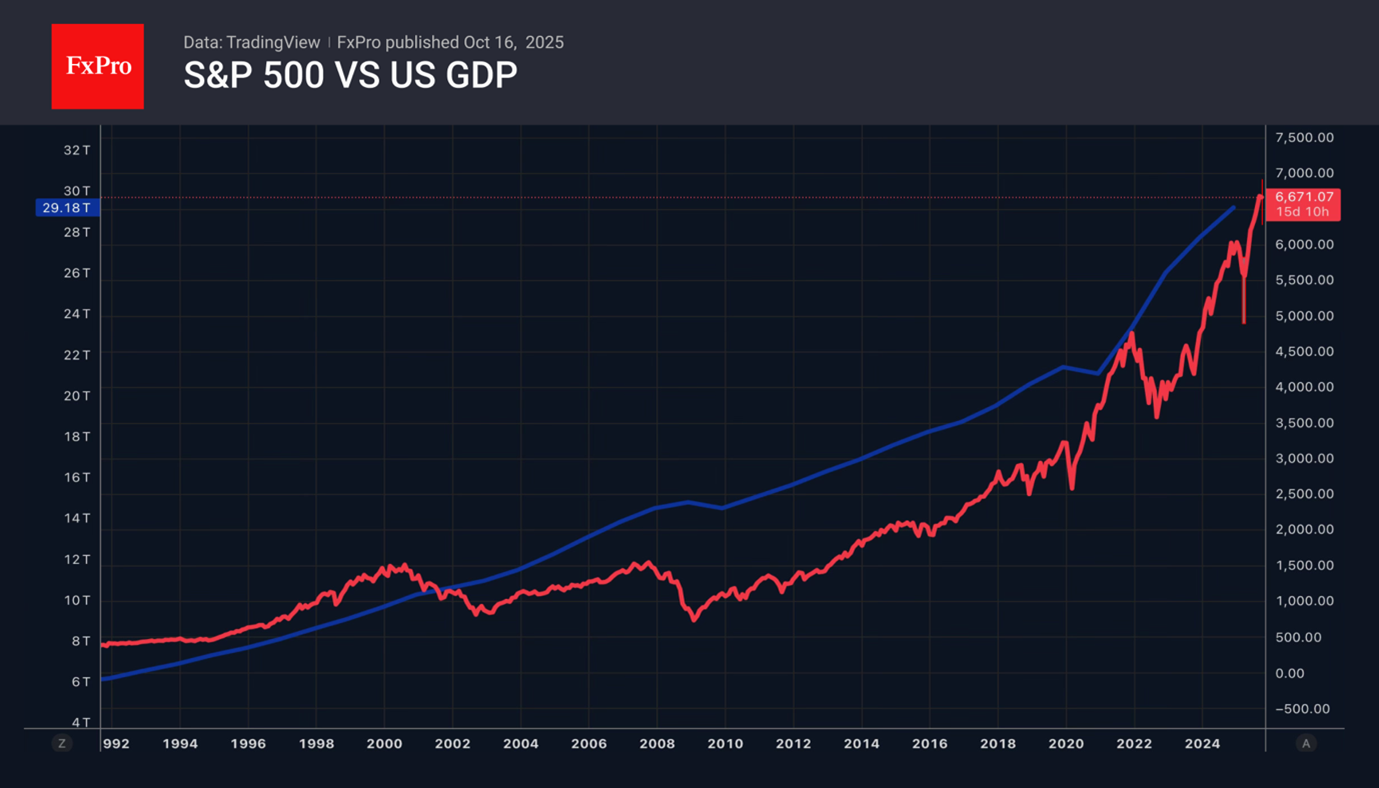 Стремление Белого дома затушить пожар торговой войны, ожидания продолжения цикла снижения ставок ФРС и отличный старт сезона корпоративной отчётности позволили «быкам» по S&P 500 зализать раны. Прибыль шести крупнейших банков США в третьем квартале выросла на 19% до $41 млрд. Активы под управлением BlackRock впервые в истории превысили отметку $13 трлн. Руководство кредиторов полно оптимизма в отношении перспектив американской экономики. Потребители продолжают тратить деньги, несмотря на слабость рынка труда и неопределённость политики Белого дома.