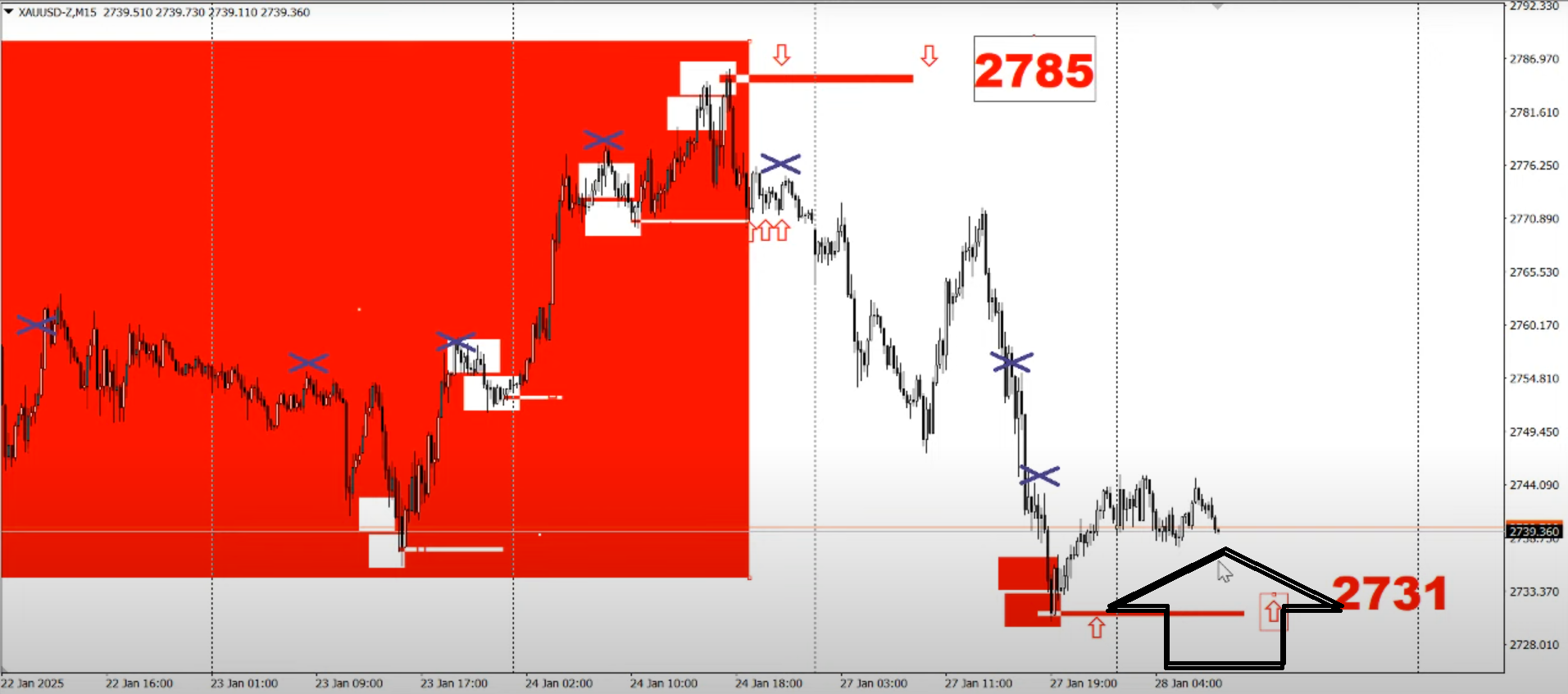 Золото начинает неделю с разворота среднесрочного тренда вниз из области 2785. Однако противоречивость ситуации в том, что в котировке Gold формируется импульс к росту в области 2731 - 2733 на фоне возрождающегося к росту краткосрочного тренда. По традиции грамотные покупатели, как и всегда, проявляют активность на возврате к точке начала тренда либо по факту возвращения к импульсу в продолжение роста на минимумах текущего дня. В ближайшие дни и сегодня в качестве такой цели выступает область 2731 - 2733, где в соответствии со структурой краткосрочного тренда и восстанавливается интерес покупателей. Поведение в GOLD в начале года и цели на ближайшие дни, а также условия реализации новых целей обсудим в видео ниже.
