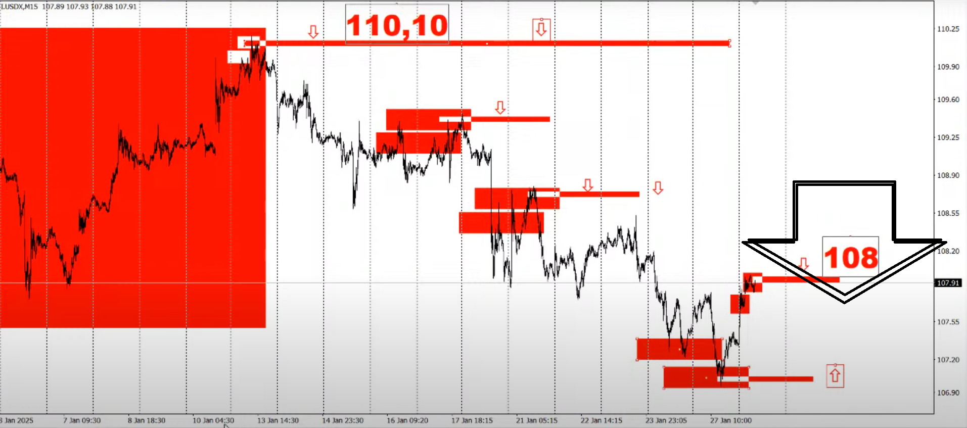 По факту накануне решения ФРС по процентной ставке 29 января доллар под давлением и сегодня. Рост USD во много опирался на последние Протоколы заседания ФРС США в начале 2025г, главные тезисы которого вновь подтвердили устойчивость рынка труда и возможности ограниченного снижения (не более 2-х раз по мнению большинства членов ФРС) процентных ставок в Америке в 2025г. Однако, несмотря на позитивные отчеты по деловой активности и рынку труда в США, Индекс USD пока не может себе позволить штурм 110, а также остается под прессом перетока ликвидности в Gold, BTC и на рынок акций США, что также обсудим подробно в видео в конце статьи.
