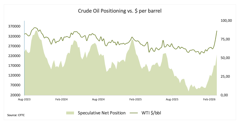 Данные по позиционированию показывают, что все больше инвесторов ставят на рост цен на нефть.