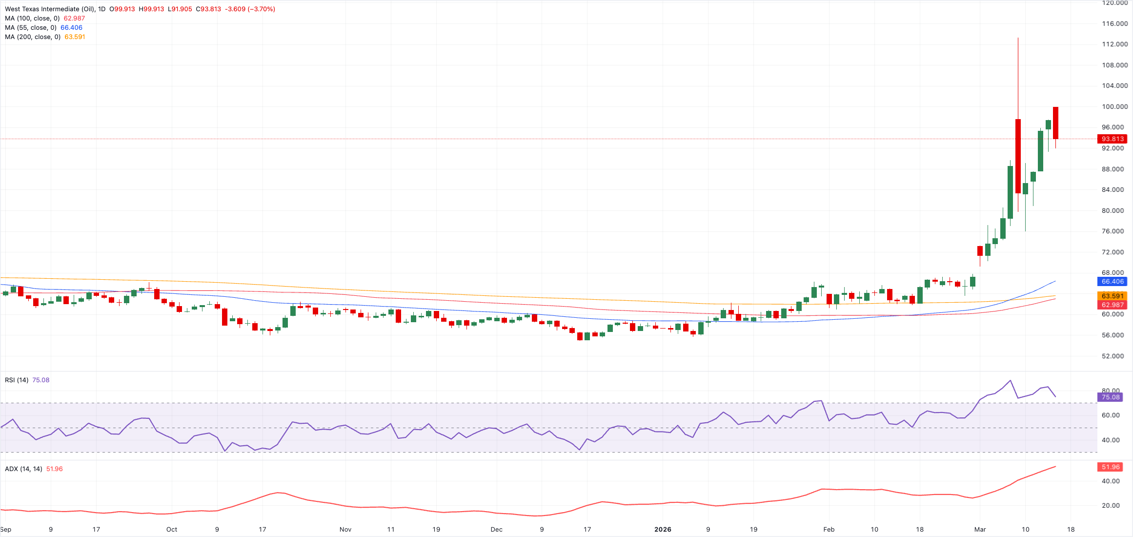 Цены на нефть WTI резко корректируются вниз и сейчас торгуются вблизи отметки $93 за баррель. В то же время участники рынка, похоже, пересматривают риски поставок, так как растут надежды на то, что перебои могут быть сдержаны после призыва президента Трампа к союзникам помочь обеспечить безопасность Ормузского пролива.