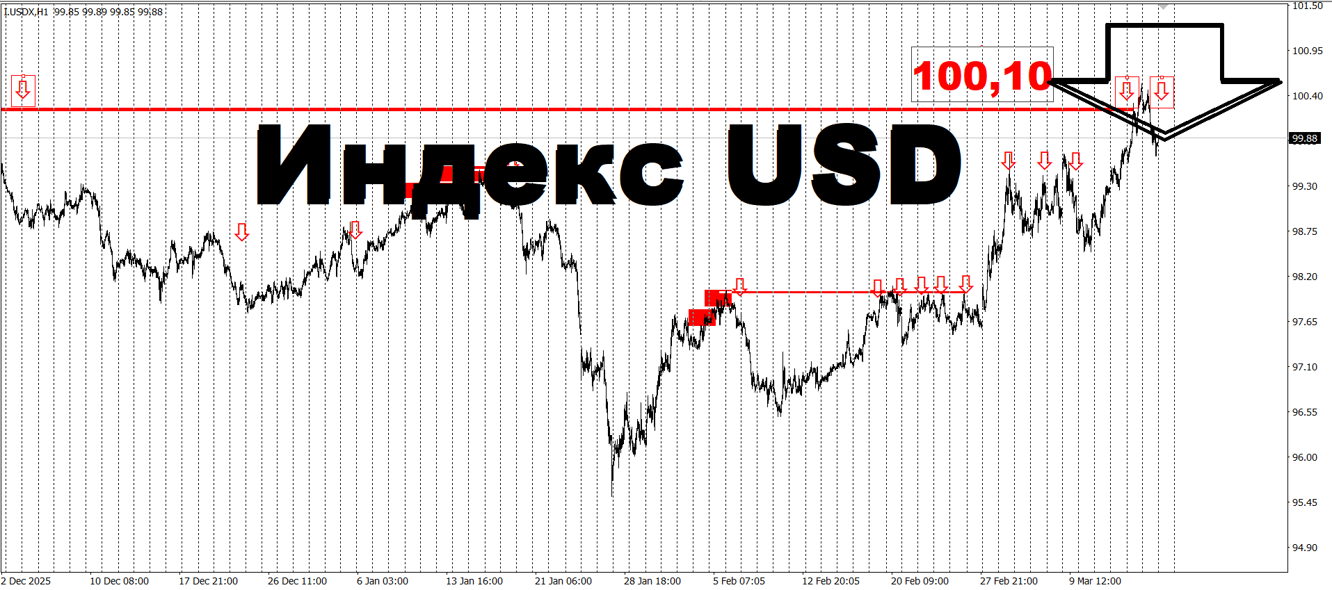 В пользу доллару звучат и заявления ФРС США, в которых на прошлой неделе регулятор не спешит снижать процентные ставки, чтобы не провоцировать дополнительный рост инфляции от нефтяных цен и их возможных последствий. Покупатели доллара набрались храбрости и пытаются штурмовать максимум 100 - 100,20 в условиях сдержанности Федрезерва. Однако присутствие "зеленой" валюты на максимумах года уже само по себе способствует перетоку капитала в золото.