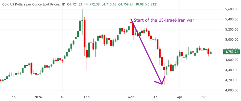 Статус золота как надежного краткосрочного хеджа против роста цен все больше ставится под сомнение. Цены на золото переживают период резкого падения, и снижение особенно заметно с начала конфликта между США, Израилем и Ираном.