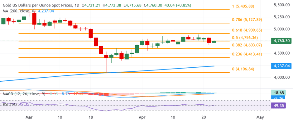 Смотря за пределы краткосрочной перспективы, прогноз по золоту остается конструктивным. Доллар США уже испытал заметное снижение в апреле, поскольку инвесторы сократили экспозицию к геополитическим премиям за риск, несмотря на неопределенность вокруг мирных переговоров между США и Ираном.