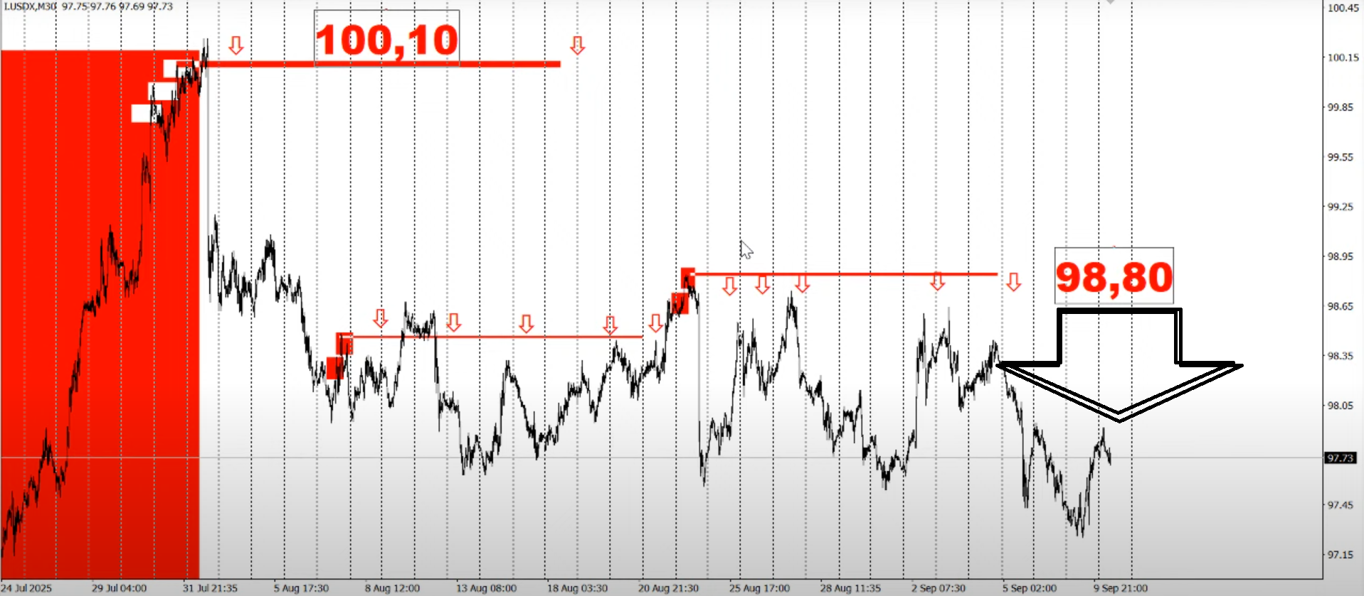 Тарифно-торговая политика Трампа и ее влияние на инфляцию продолжает настораживать и беспокоить Федрезерв. При этом рынок труда (NFP) уже дает негативный сигнал для ФРС в последние месяцы, что фундаментально толкает в пике доллара из области 98,80 - 100,10. Переток ликвидности по-прежнему актуален на рынке именно к конкурентам "зеленой валюты", а именно в Gold, Биткоин, Dow Jones, что в деталях и новые цели разберем также в видео ниже.