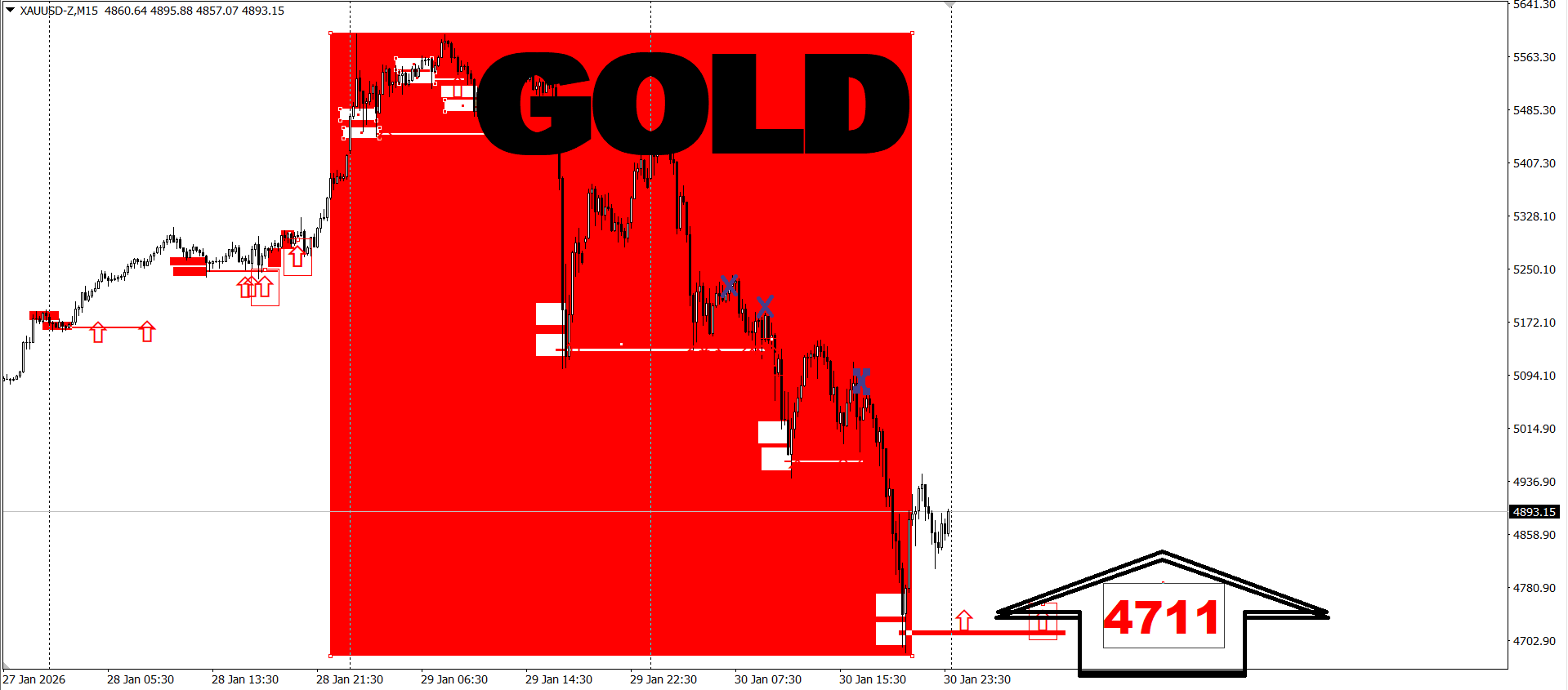Новую тему раскроем на примере актуальной области для новых покупок 4711 - 4715, где в конце недели сформировался новый импульс для разворота краткосрочного тренда к росту в Gold и где НЕ стоит упускать активность покупателей в золоте.