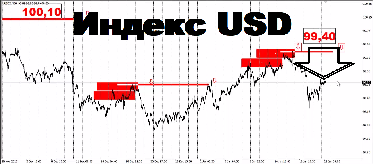 Статья содержит демонстрацию актуальных целей (выгодных цен) и логики для работы c золотом (GOLD) на 22 - 23 ЯНВАРЯ 2026 года, а также в конце статьи наглядная иллюстрация целей для торговли в Биткоин, Dow Jones и в котировках EUR/USD, GBP/USD (ссылка на видео версию статьи в конце).