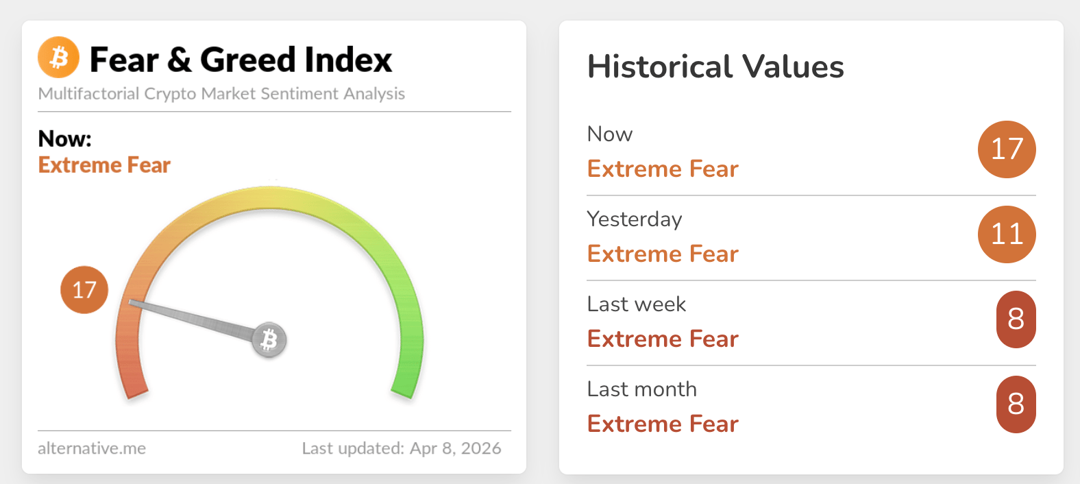 Перемирие может принести облегчение рынкам и потенциально снизить макроэкономическую неопределенность. Крипторынок демонстрирует признаки возвращения интереса к риску, чему способствует рост индекса страха и жадности до 17 в зоне крайнего страха в среду с 11 накануне.