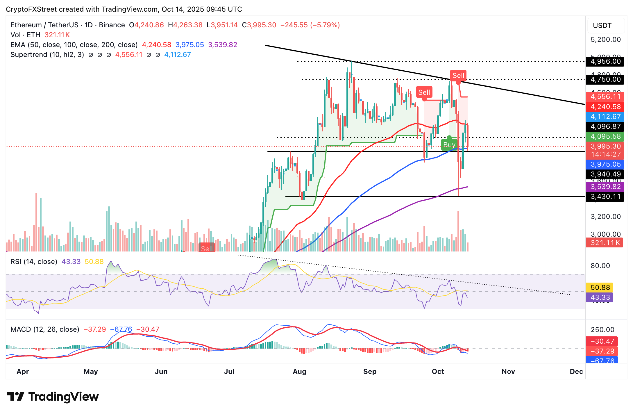 - Эфириум падает ниже уровня $4 000, тестируя поддержку 100-дневной EMA.