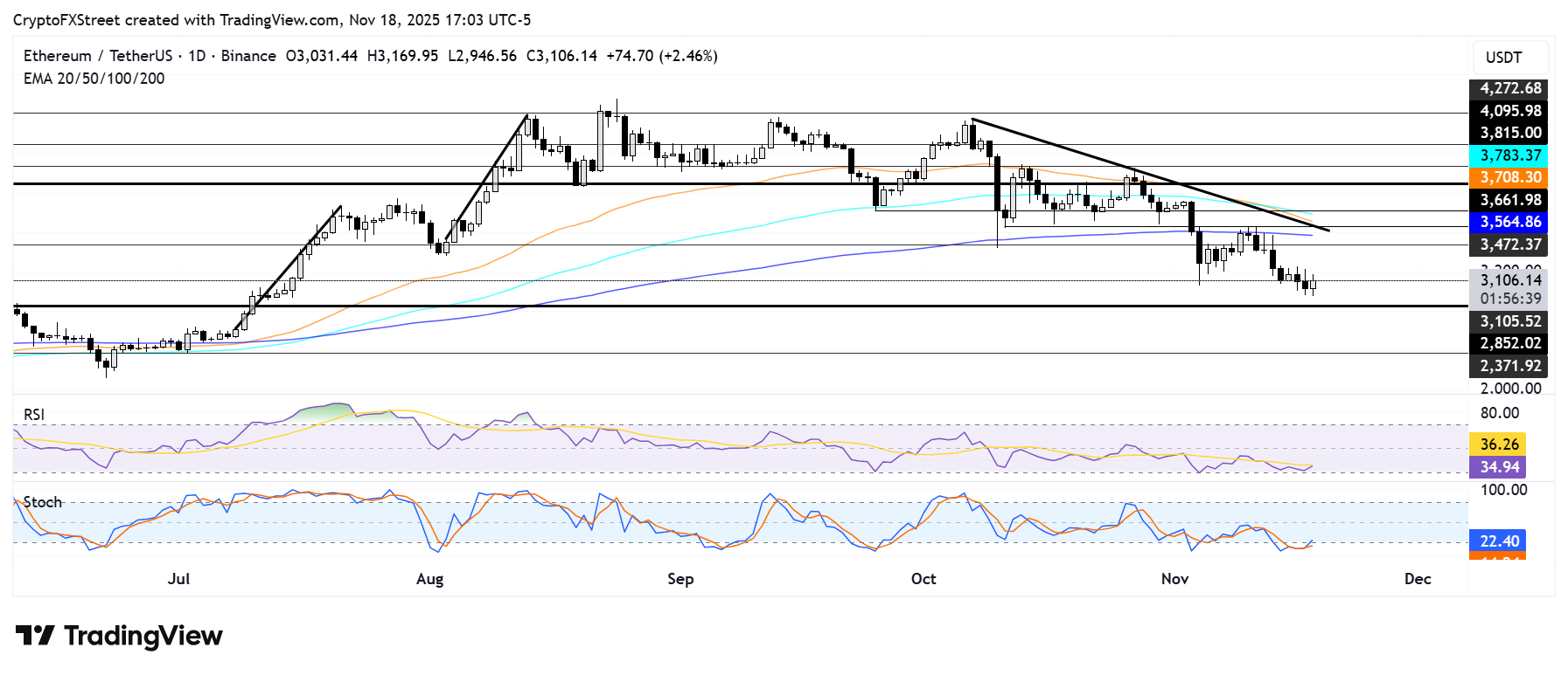 Прогноз цены Ethereum: ETH пытается удержать восстановление выше уровня поддержки $3 100