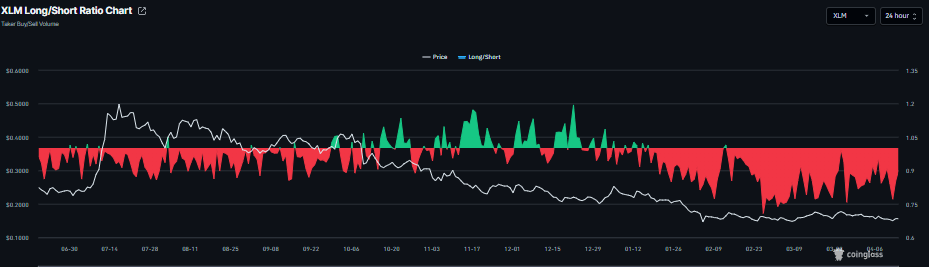 С точки зрения деривативов, данные Ripple и Stellar показывают смешанные настроения. Коэффициент лонг/шорт CoinGlass для XRP и XLM составляет 0,92 и 0,89 соответственно. Этот коэффициент ниже единицы отражает медвежьи настроения на рынке, так как больше трейдеров ставят на падение цены актива.