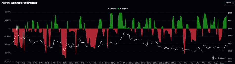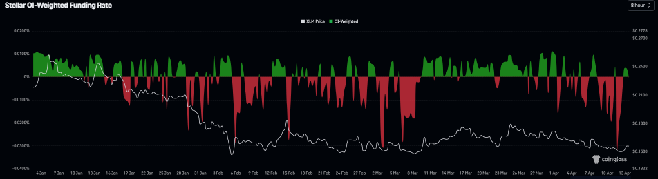 Между тем, ставки финансирования поддерживают улучшение настроений. Данные CoinGlass по взвешенной открытой позиции (OI-Weighted Funding Rate) для XRP и Stellar стали положительными в понедельник, составив 0,0081% и 0,0035% во вторник соответственно. Этот положительный показатель указывает на то, что лонги платят шортам, что отражает бычьи настроения.