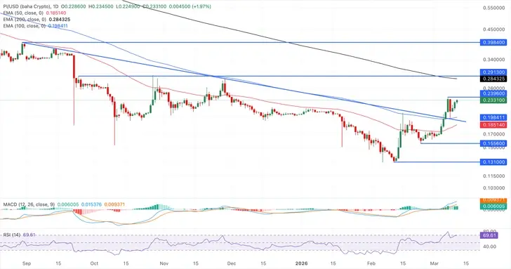 Pi Network увеличился на 2% на момент написания в среду, продлив прирост до более чем 10% на этой неделе с тремя последовательными днями восстановления. PI продолжает свой прорыв из долгосрочного нисходящего тренда выше 100-дневной экспоненциальной скользящей средней (EMA) на уровне $0,1984. Направленные вверх 50- и 100-дневные EMA смещают краткосрочный тренд в бычью сторону, несмотря на падающую 200-дневную EMA на уровне $0,2843.