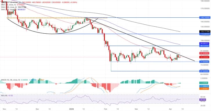 Solana (SOL) удерживается выше $80 на момент публикации в пятницу, испытывая давление со стороны нисходящей линии тренда и снижения институционального интереса на этой неделе. На фоне возможного крупнейшего еженедельного институционального оттока, рынок кредитного плеча SOL остается смешанным из-за более широкой волатильности рынка. С технической точки зрения, прорыв выше 50-дневной экспоненциальной скользящей средней (EMA) около $87 может расширить потенциал роста.