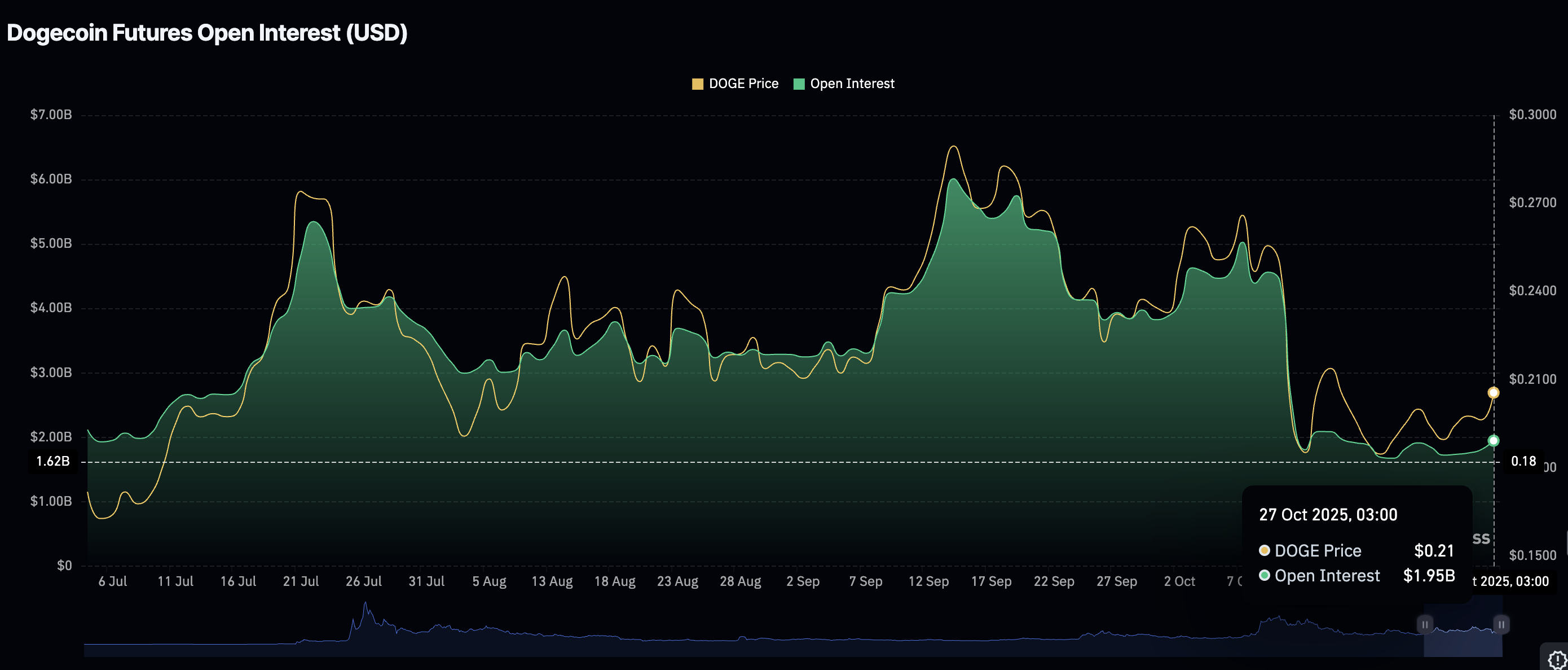 Dogecoin (DOGE), ведущий мемкоин по рыночной капитализации, торгуется выше $0,2000 на момент написания в понедельник, после фиксации прибыли и изменения настроений на более широком рынке криптовалют, что привело к сокращению роста от внутридневного максимума $0,2095.