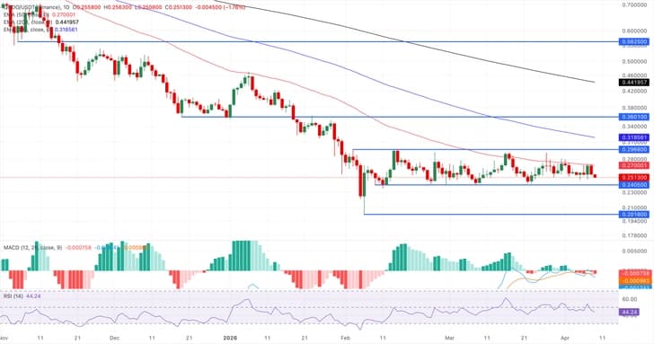 Ondo (ONDO) испытывает понижательное давление по состоянию на момент написания в четверг, угрожая уровню поддержки $0,2400. Рынок деривативов склоняется к медвежьему сценарию по ONDO, при этом открытый интерес по фьючерсам снижается на фоне интенсивных ликвидаций длинных позиций. С технической точки зрения, криптовалюта, ориентированная на токенизацию активов реального мира (RWA), теряет позиции и рискует дальнейшей коррекции.