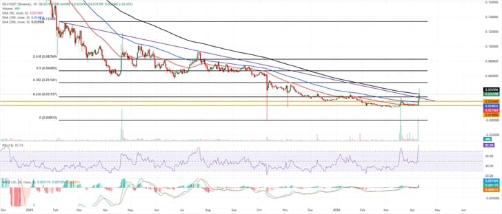 Цена Enjin Coin (ENJ) продолжает наращивать рост, торгуясь выше $0,035 в четверг после резкого ралли на 40% накануне. Бычье ценовое движение поддерживается ончейн-данными и данными по деривативам, при этом конструктивный технический прогноз предполагает дальнейший рост ENJ в ближайшие дни.