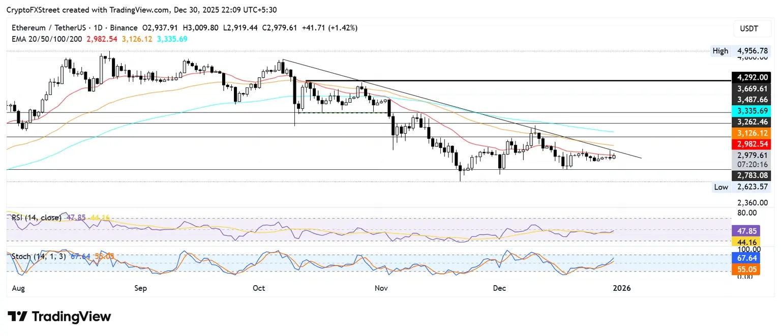 Прогноз по цене Ethereum: ETH удерживается выше $2 900, несмотря на растущую активность продаж