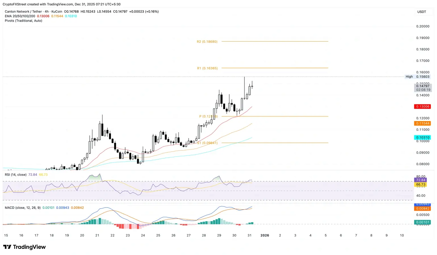 Canton (CC), Four (FORM) и Plasma (XPL) являются активами с наилучшей производительностью за последние 24 часа с двузначным ростом. Продолжительное восстановление в Canton набирает обороты, в то время как Four и Plasma нацелены на решающее закрытие выше 200-периодной экспоненциальной скользящей средней (EMA) на 4-часовом графике.
