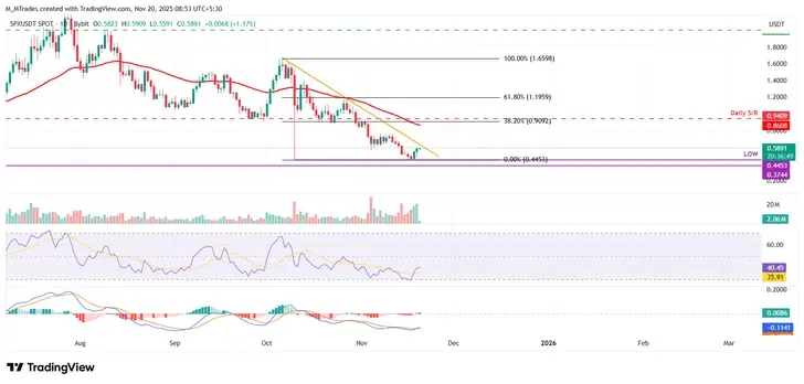 Цена SPX6900 (SPX) удерживается около $0,58 на момент написания в четверг после отскока от ключевой зоны поддержки ранее на этой неделе. Данные ончейн и деривативов показывают укрепление рыночных условий, с растущим объемом торгов, увеличением активности китов и положительными ставками финансирования, что указывает на возобновленный бычий импульс. Тем временем технические индикаторы также указывают на ослабление медвежьего давления, поддерживая возможность продолжения восстановления SPX.