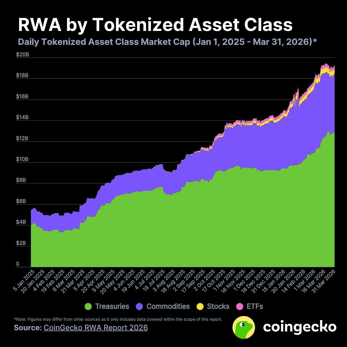 Токенизированные активы реального мира (RWA) похоже выходят из своей скорлупы, согласно последнему отчету CoinGecko, который демонстрирует значительный рост рыночной капитализации и объема торгов по различным классам активов.