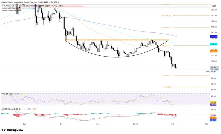 Прогноз по цене Solana: SOL опускается ниже $100, медведи усиливают давление