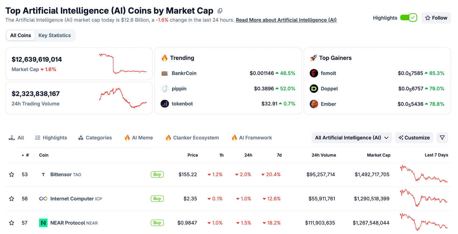 Обновление AI Crypto: BankrCoin и Pippin стремительно растут, так как рыночная капитализация сектора стабилизируется выше $12 млрд
